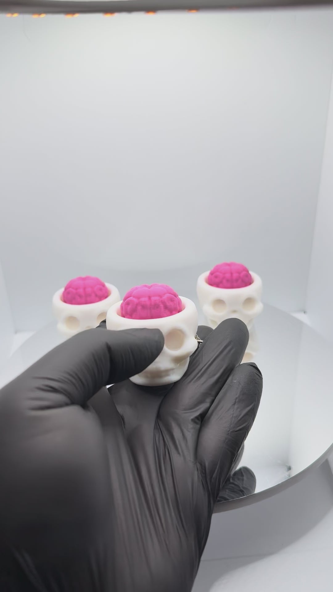 Eşsiz Tasarım: Beyaz kuru kafa tabanı ve tuş (keycap) görevi gören pembe beyin detayıyla marjinal bir görünüm sunar.